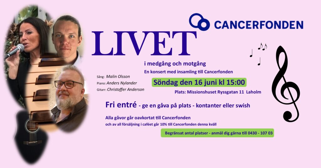 Den första konserten gick av stapeln i juni 2024 och vi använde Missionshuset på Ryssgatan som konsertlokal. Ändamålet var då att få in pengar till Cancerfonden och vår ägare, Tommy lovade att allt som kom in skulle han dubbla. Slutresultatet blev att vi betalade in drygt 80.000:- till Cancerfonden.